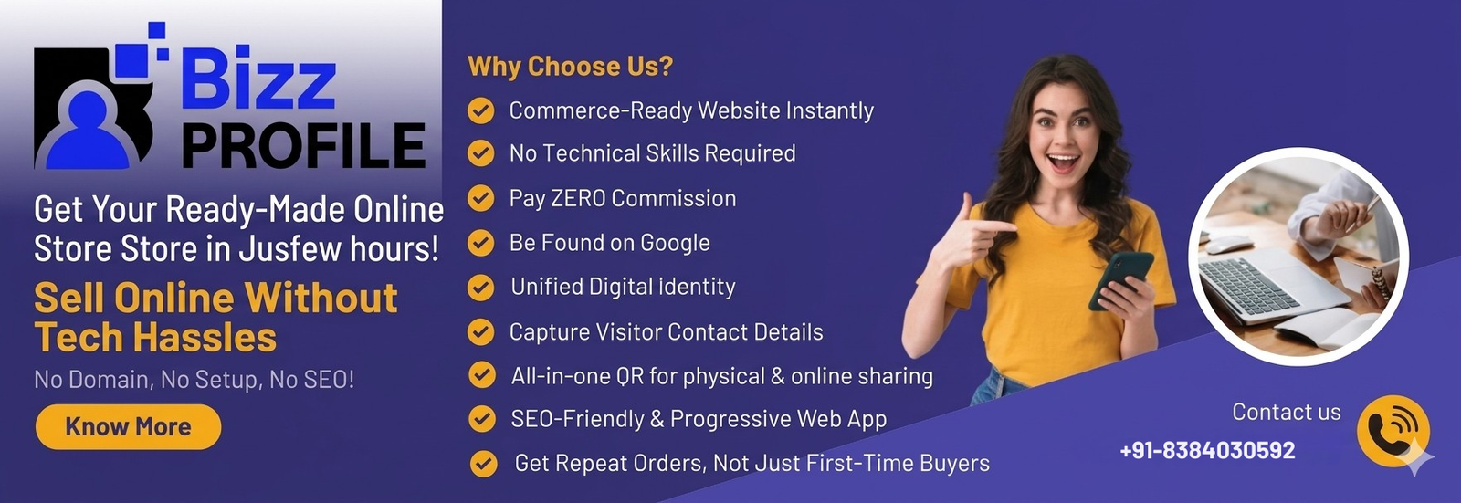 BizzProfile is your all-in-one digital solution to showcase your business, sell online, collect payments, and connect with customers instantly—without any technical skills, expensive setups, or commissions. From a smart QR-based profile to an e-catalogue, social links, and payment gateway, everything is just one tap away for your customers.