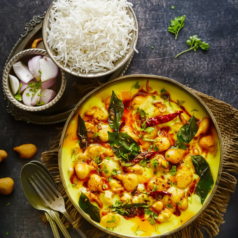 Savor the comforting harmony of our kadi chawal, where tangy, creamy kadi meets perfectly steamed rice for a soul-soothing and deliciously satisfying